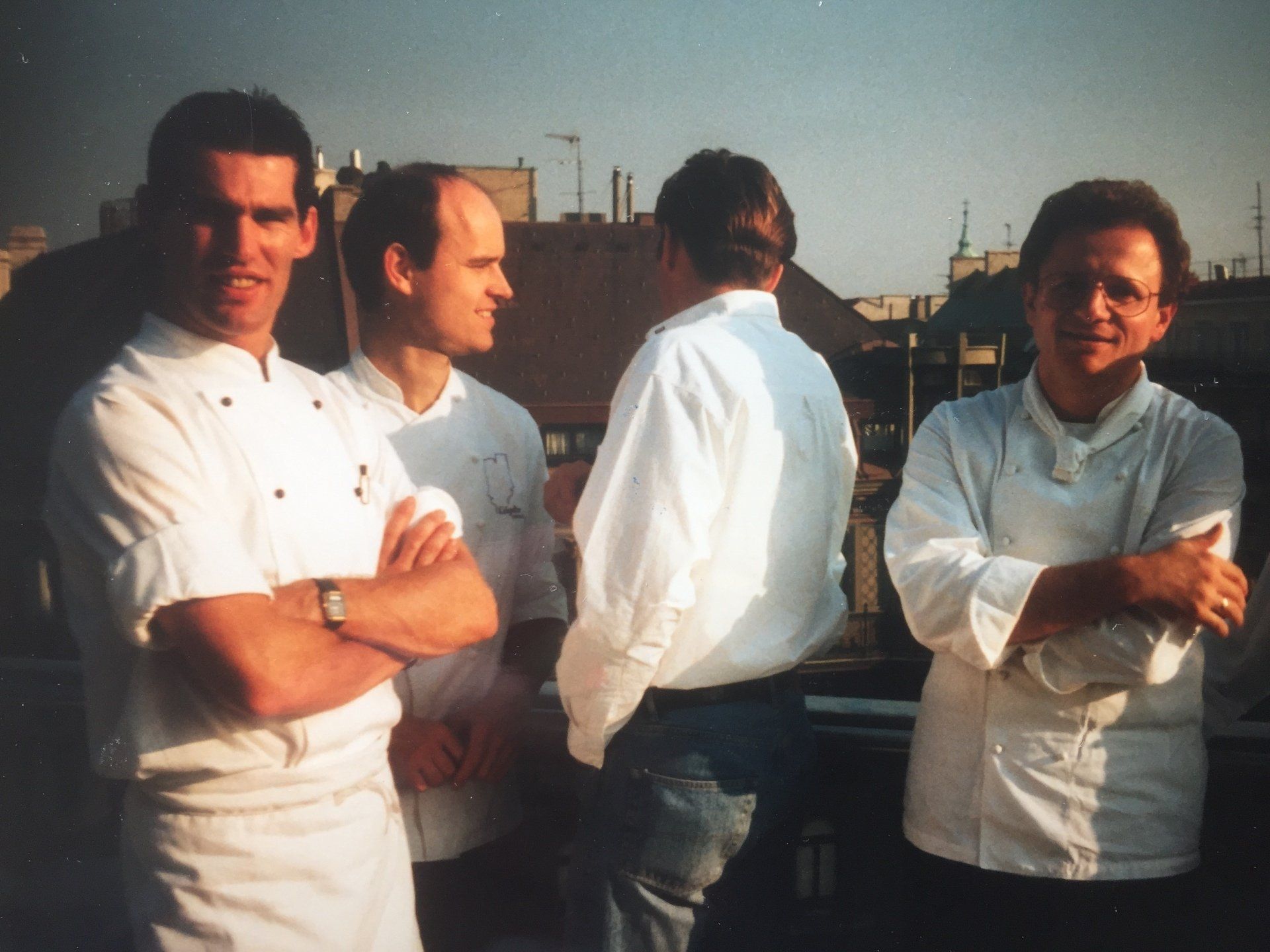 *Hand gezouten Spaanse ham, rucolasalade met feta en tomaat, gekonfijte mango/gembercrème, ballotine van kwartel met notenmix